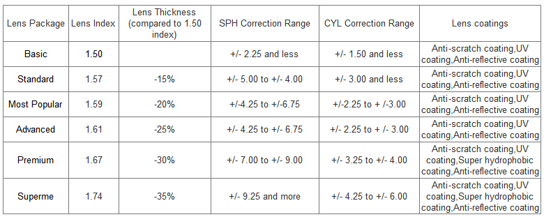 2. How to choose lens index/sllac lens package?