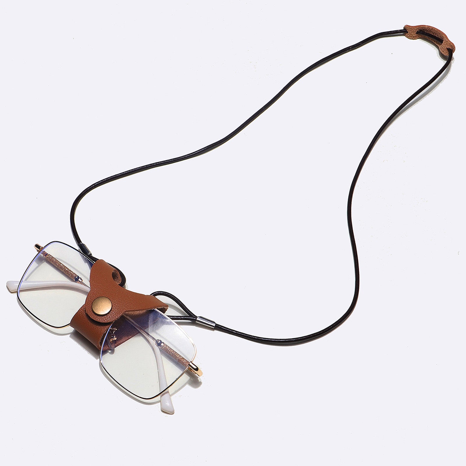 Looking for a easy carrier to carry your glasses with your hands free? Here we found a classical colored pu leather glasses chain for you. Length: 45mm. It can keep your glasses safe and decorate your outfit. Length: 45cm.
