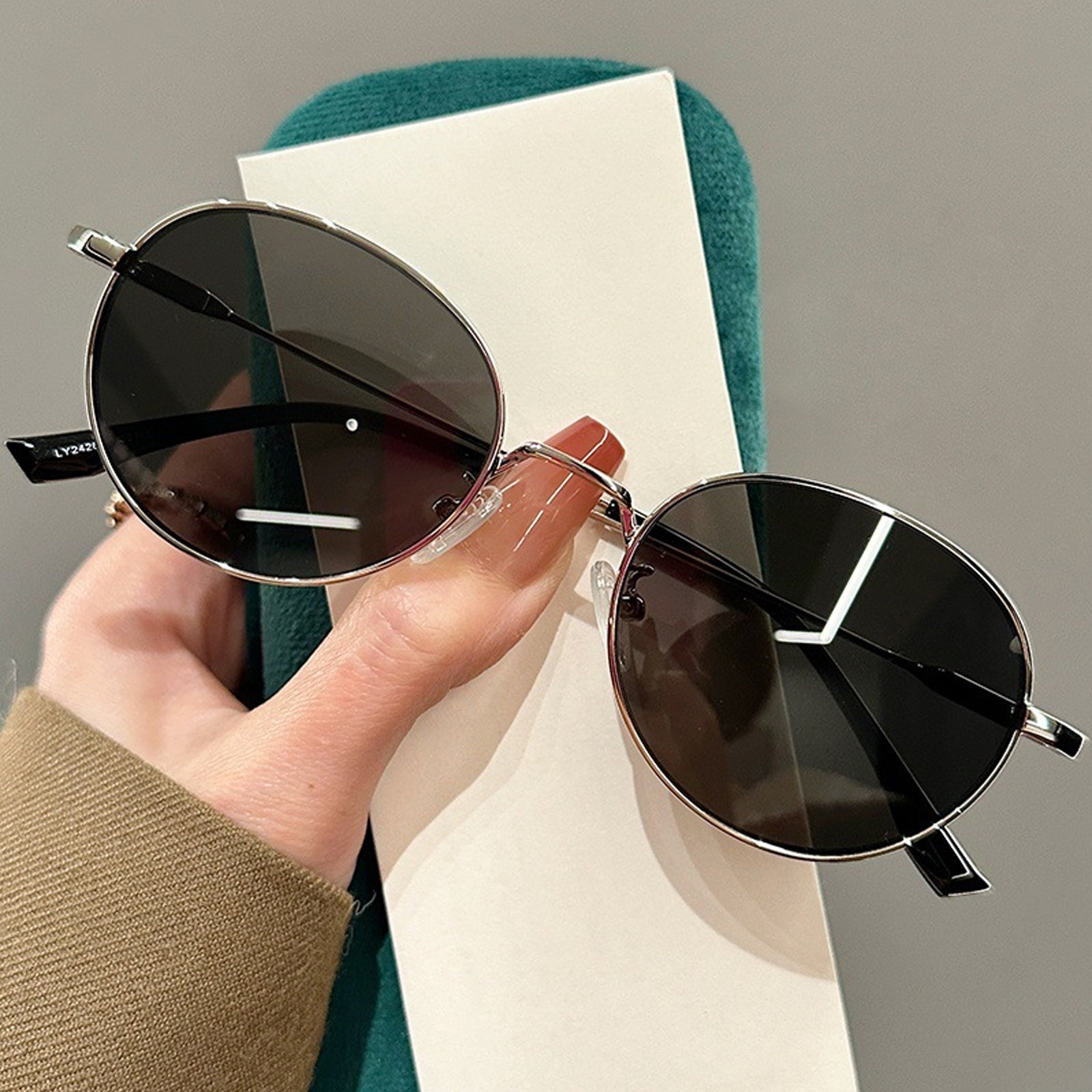 My new favorite round/oval frames. So retro. These are perfect shape..the lenses are just right! I just WISH I could find this frame in gold or crystal.. a light color. I look a bit bookish all three colors will appear quite dark. I got the green.. they’re really black with a bit of green inside the edhes. Pretty.